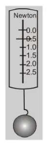 A spring scale indicates the amount of the spring is stretched or compressed. The magnitude of this force is proportional to the amount of the spring is stretched (or compressed), and the direction of the force is along the spring. The scale may be calibrated to read in newton (N), units of force in SI system is newton and in $\mathrm{C} . \mathrm{G} . \mathrm{S} .$ system is dyne.