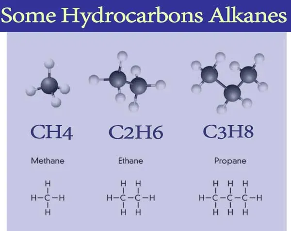 For example; Methane (CH4), Ethane (C2H6), Ethene (C2H4), Ethyne (C2H2) etc