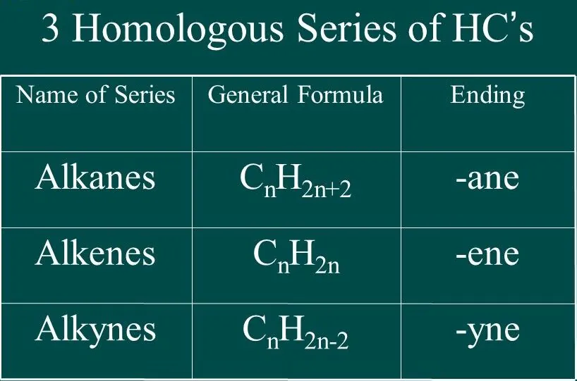Homologous Series: A homologous series is a series of organic compounds that have the same functional group and exhibit similar chemical properties, with successive members differing by a CH2 unit or 14 mass units.