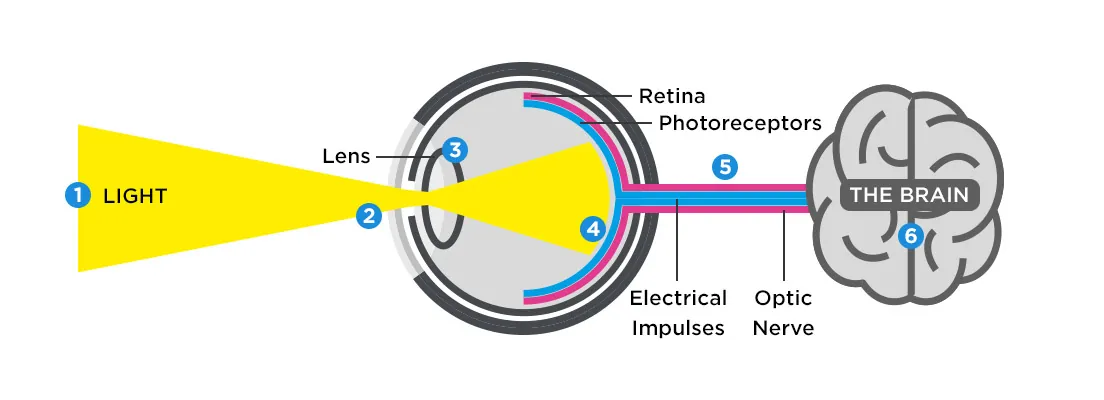 - Optical nerves take the image to the brain in the form of electrical signals.