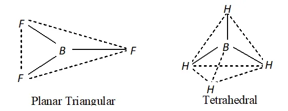 Q. Describe the shape of $B F_{3}$ and $B H_{4}^{-}$. Assign hybridisation of boron in these species. $\quad$