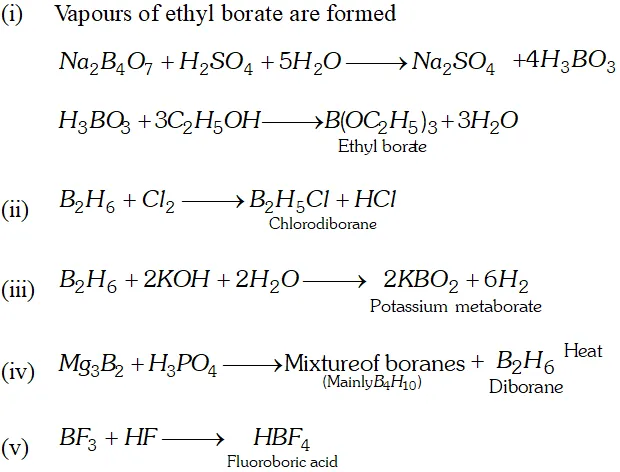 (i) $\mathrm{H}_{3} \mathrm{BO}_{3} \stackrel{370 \mathrm{K}}{\longrightarrow} \mathrm{HBO}_{2}+\mathrm{H}_{2} \mathrm{O}$