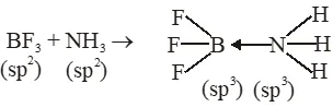Q. The formation of molecular complex $\mathrm{BF}_{3}-\mathrm{NH}_{3}$ results in a change in hybridisation of boron :-