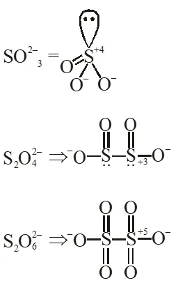 Q. Oxidation state of sulphur in anions $\mathrm{SO}_{3,}^{2-} \mathrm{S}_{2} \mathrm{O}_{4}^{2-}$ and $\mathrm{S}_{2} \mathrm{O}_{6}^{2-}$ increases in the orders :