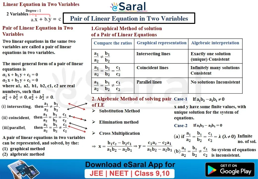 Class 10Get to learn all the formulae and important points of Pair of Linear Equations in Two Variables through this Mind Map. Download and share with your friends also. Download