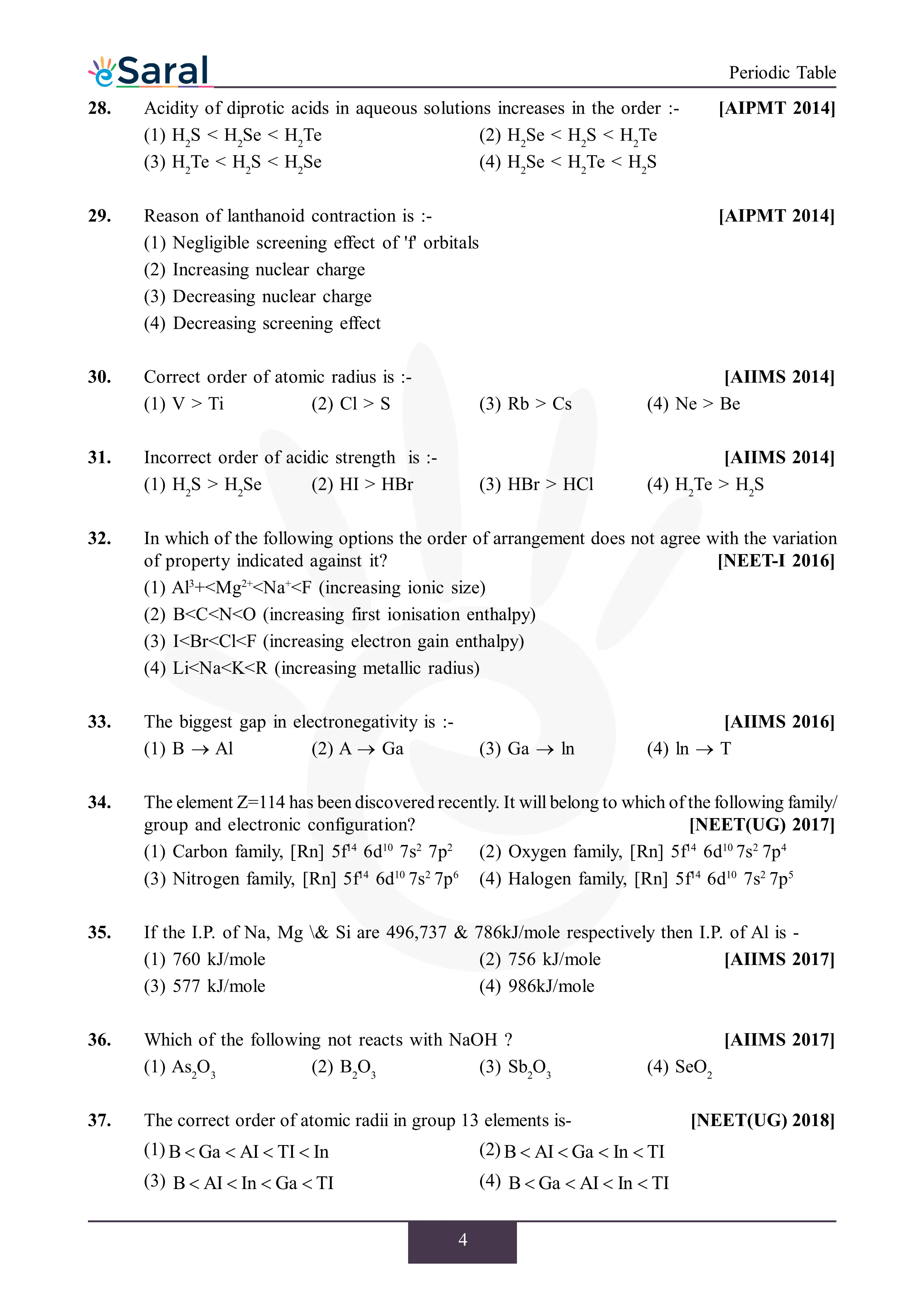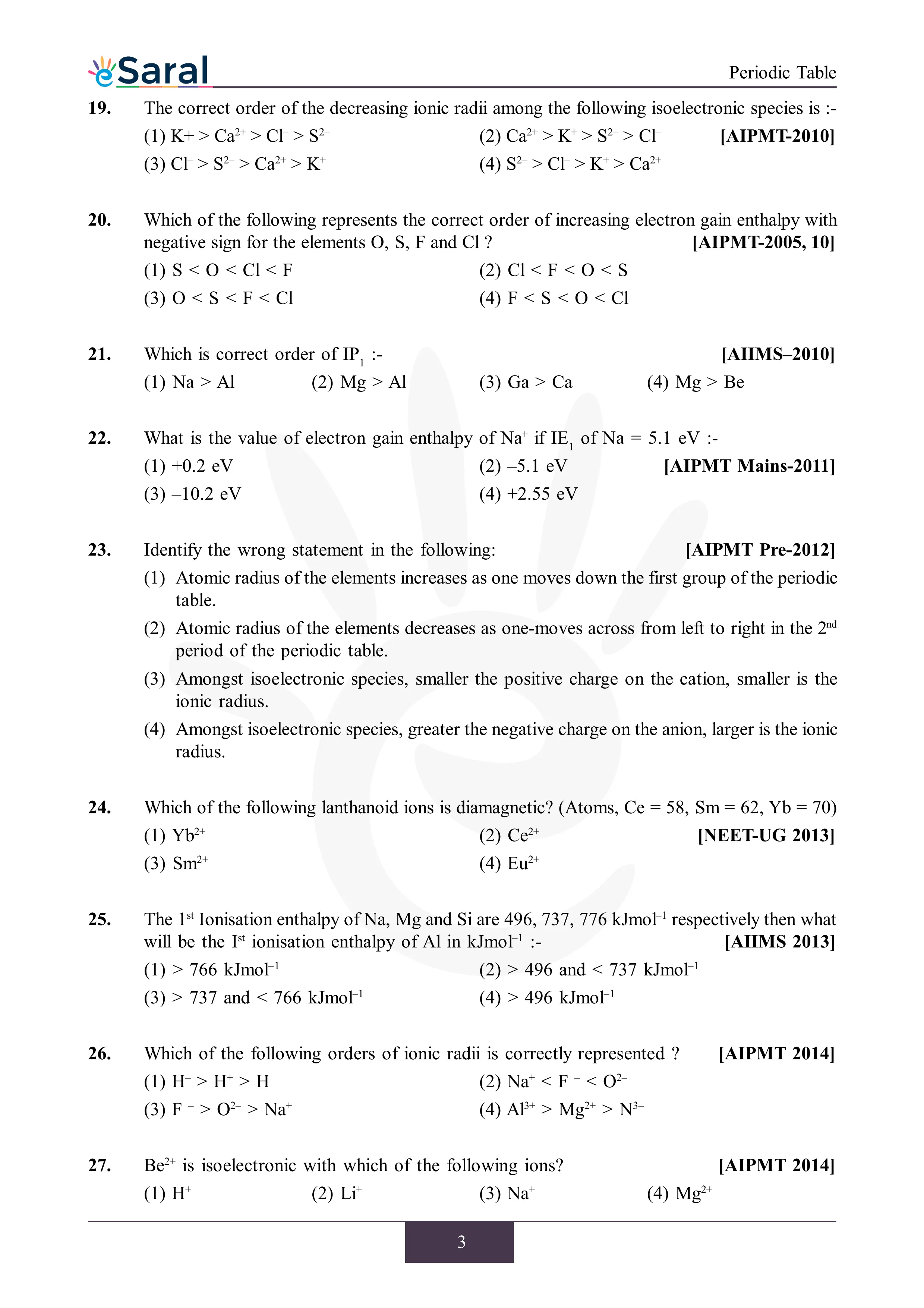 Periodic Table - NEET Previous Year Questions with Complete Solutions
