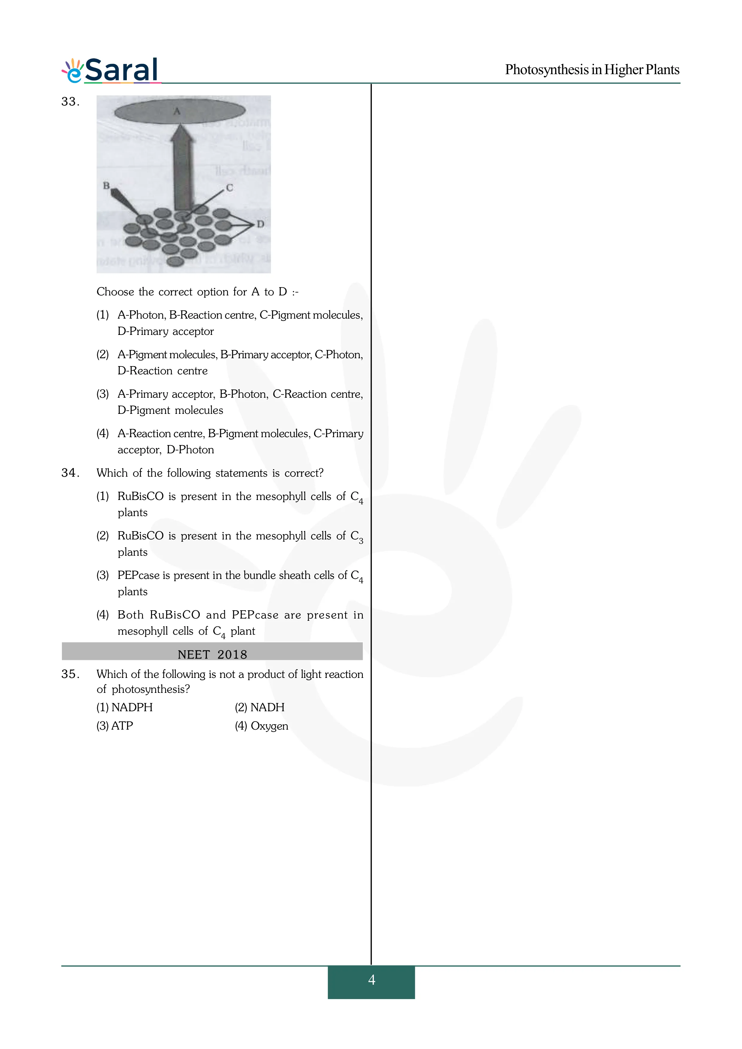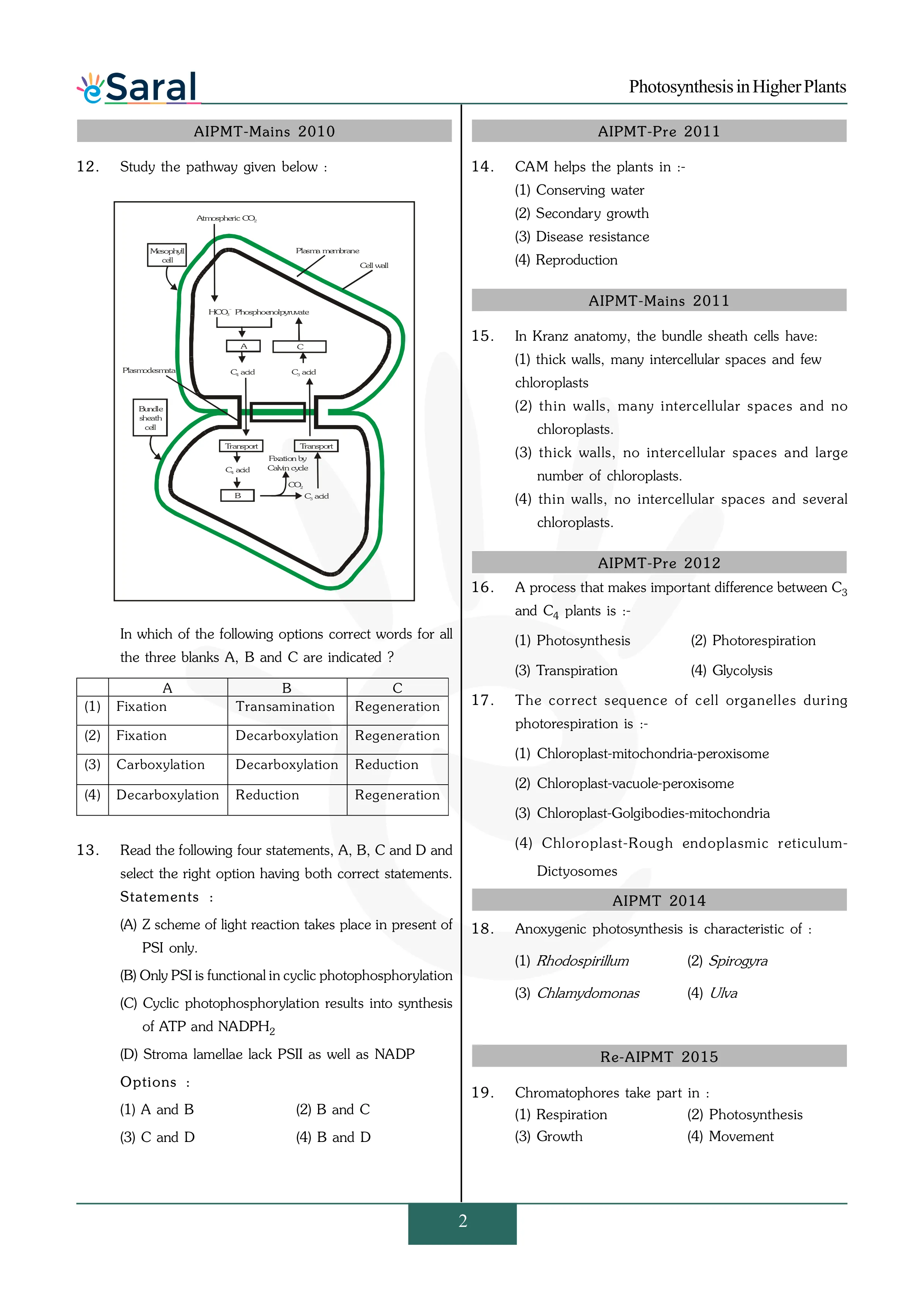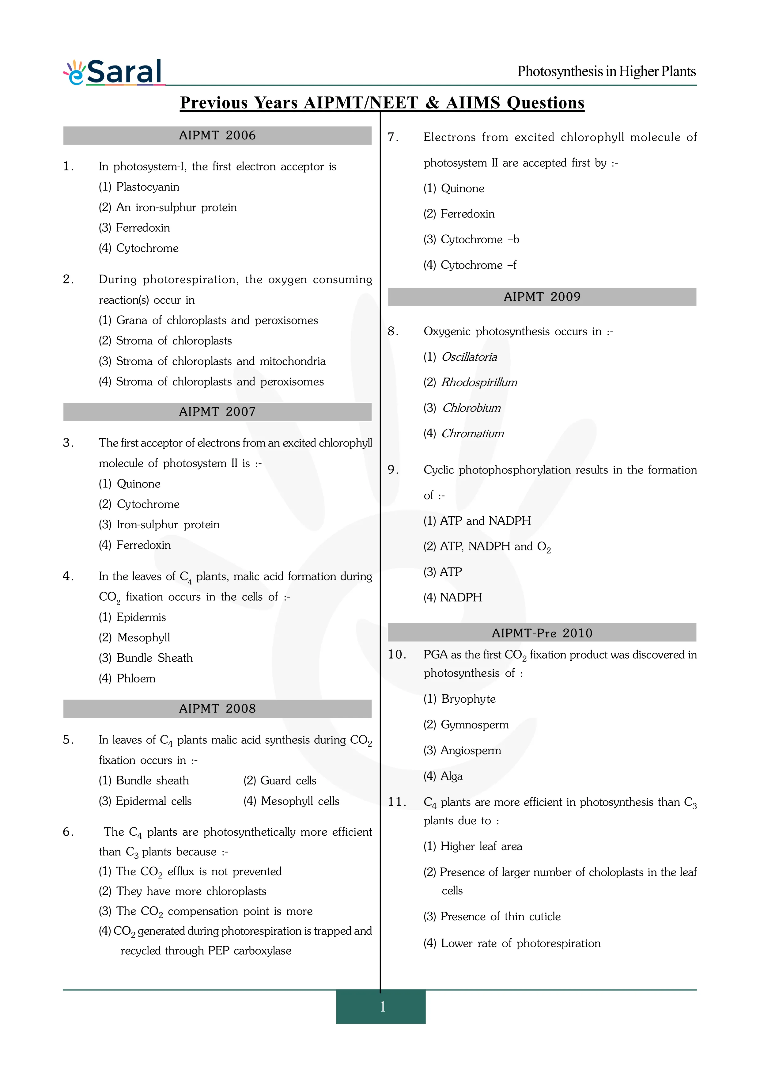 Here you will get Complete Photosynthesis in Higher Plants NEET Previous Year Questions with complete and detailed solutions.