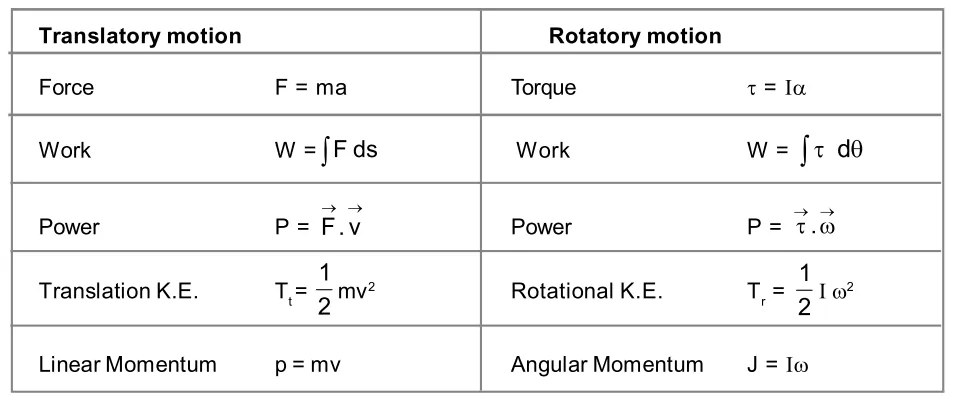 given in table I, we get moment of inertia plays same role in rotatory motion as mass in translatory