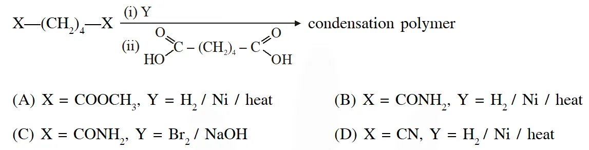 Q. The correct functional group X and the reagent/reaction conditions Y in the following scheme are