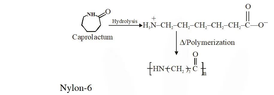 Formation of Nylon-6 involves hydrolysis of its monomer (caprolactum) in initial state.