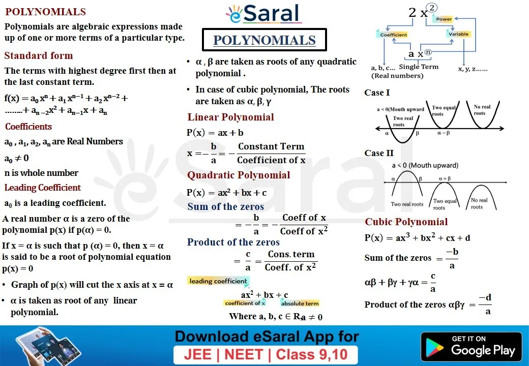 Class 10Get to learn all the formulae and important points of Polynomials through this Mind Map. Download and share with your friends also.