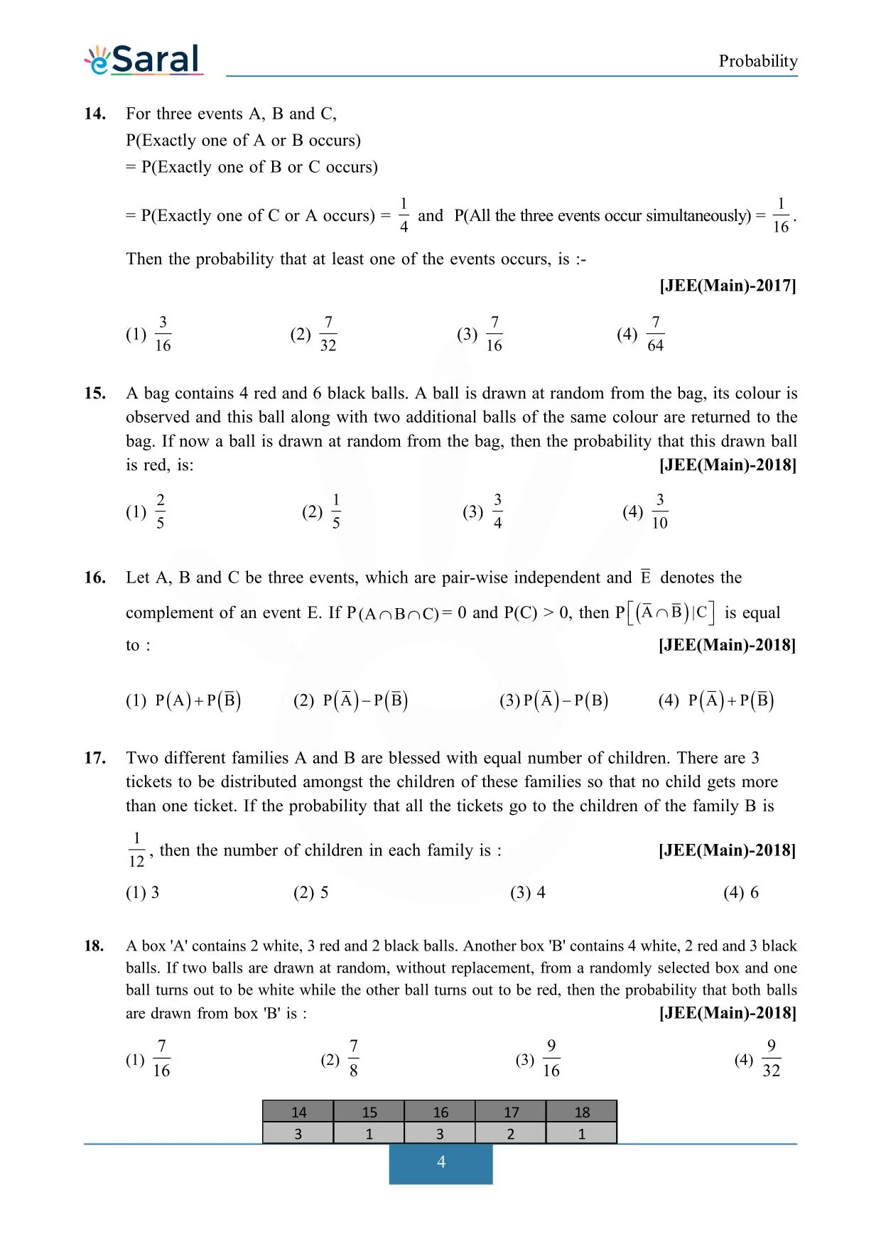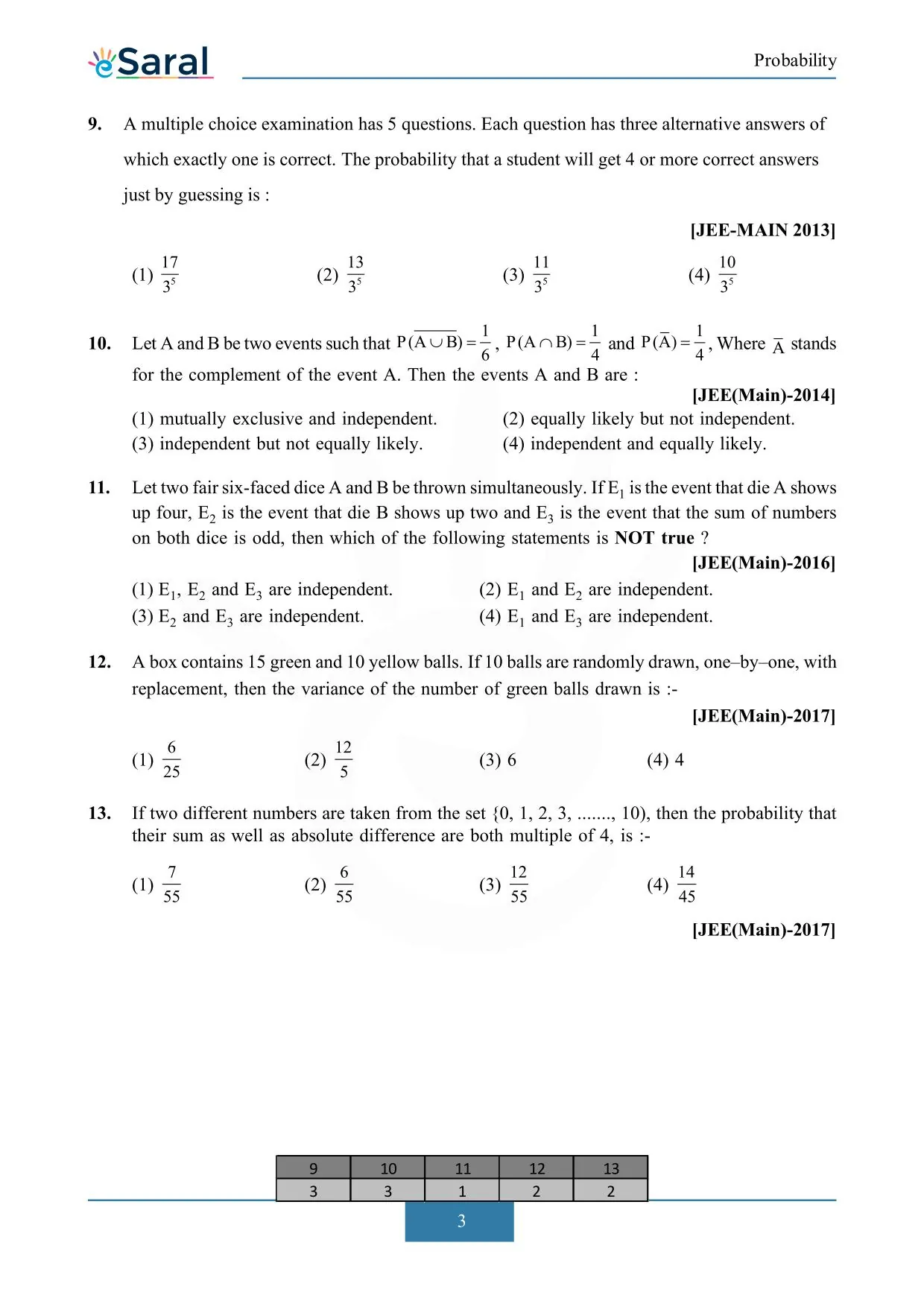Probability - JEE Main Previous Year Question with Solutions