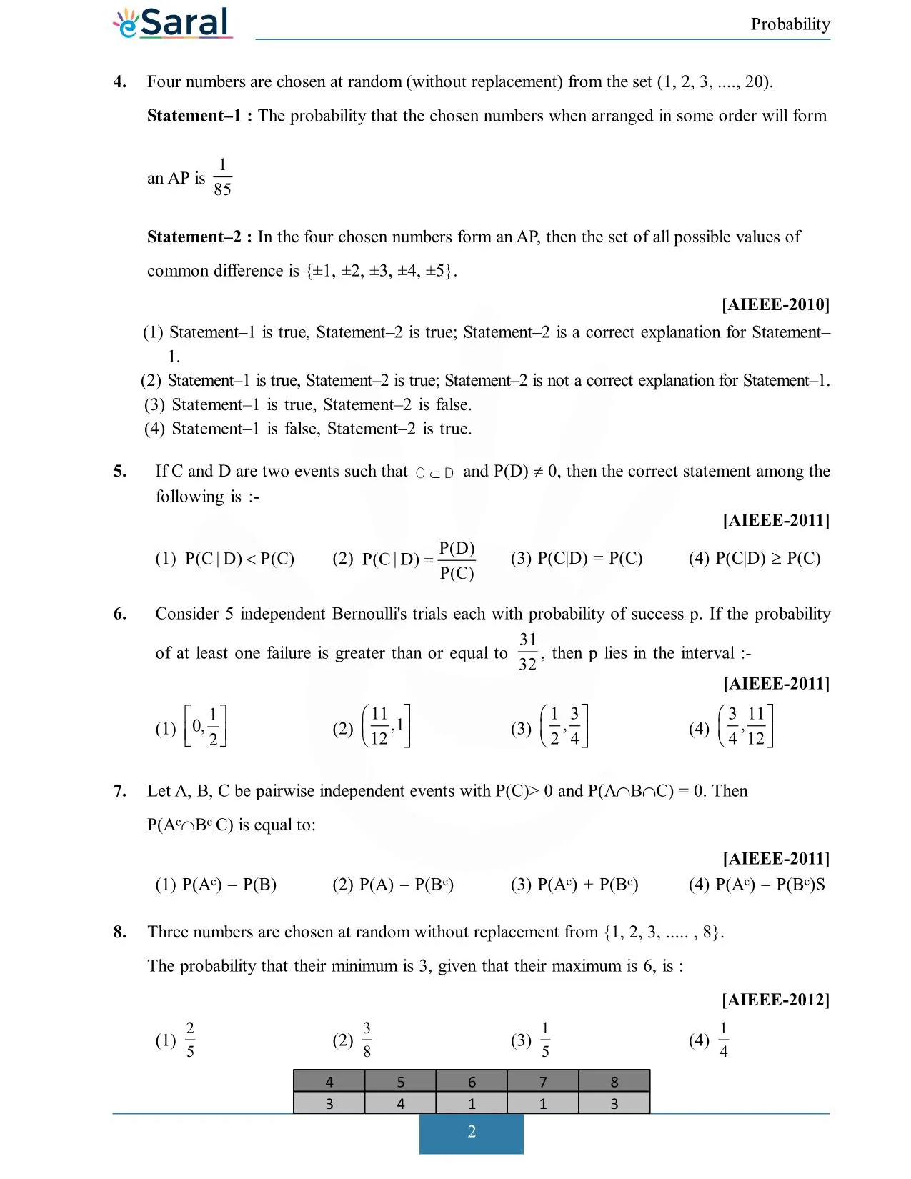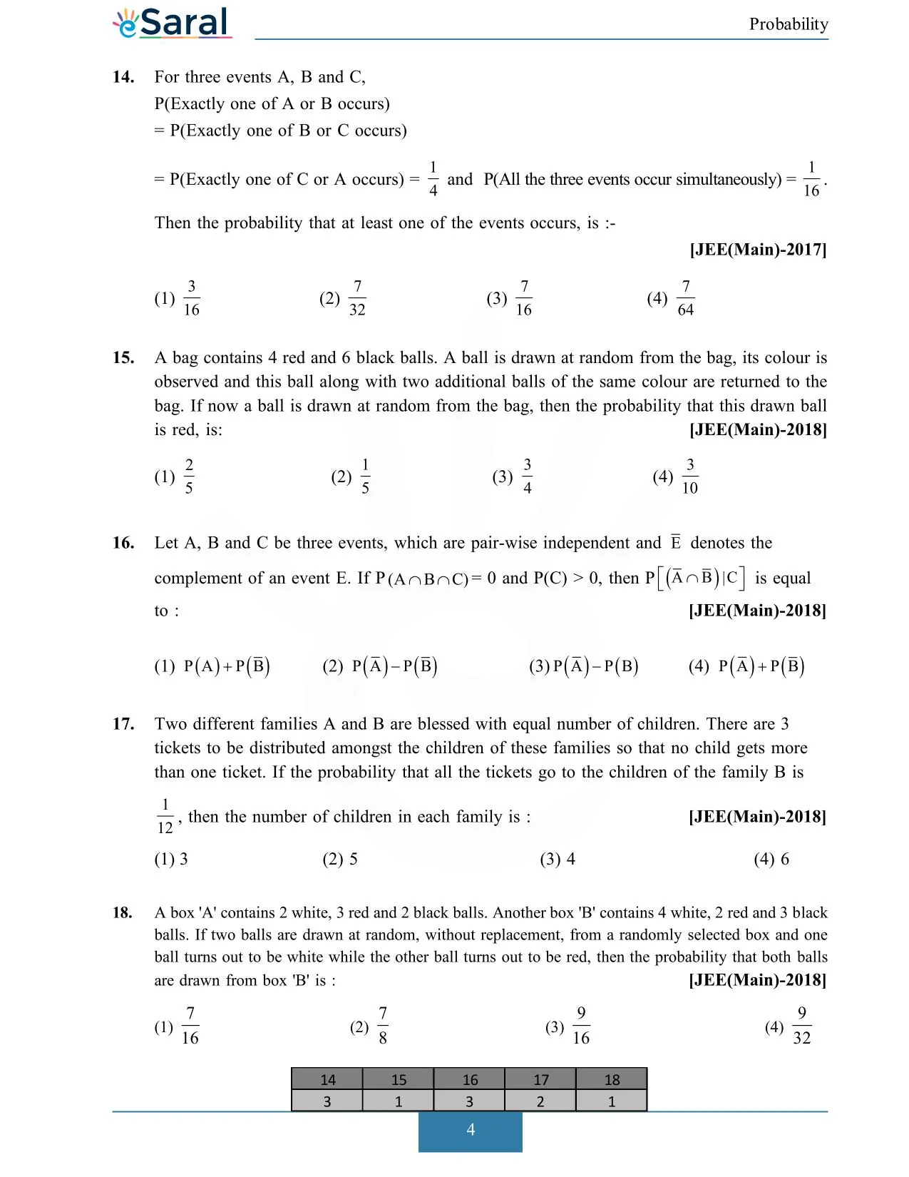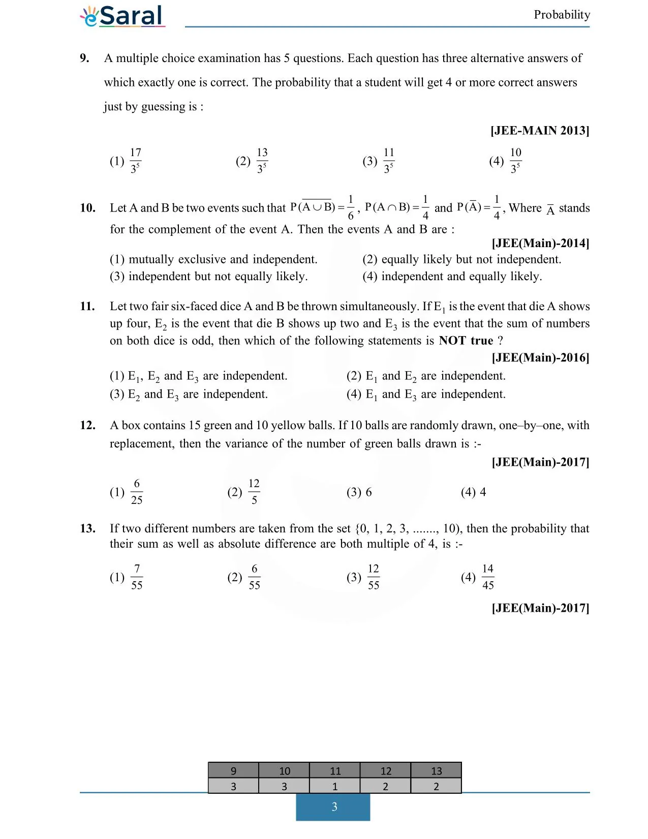 JEE Main Previous Year Question of Math with Solutions are available at eSaral. Practicing JEE Main Previous Year Papers Questions of mathematics will help the JEE aspirants in realizing the question pattern as well as help in analyzing weak & strong areas.