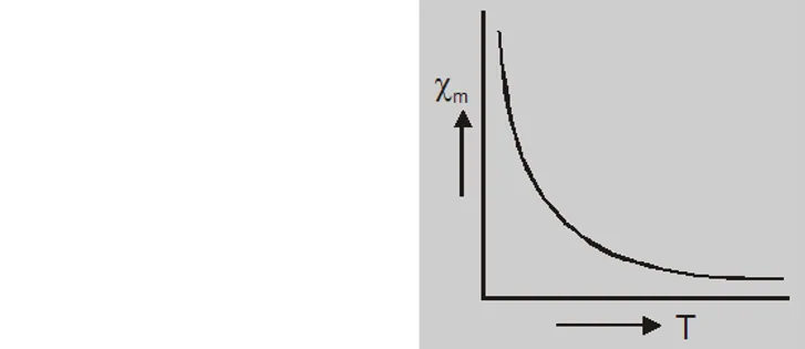 - The paramagnetic substances obey Curies law according to which magnetic susceptiblity is inversely proportional to its absolute temperature. $\quad \chi_{\mathrm{m}}=\frac{\mathrm{I}}{\mathrm{H}}=\frac{\mathrm{C}}{\mathrm{T}}$ temperature. $\quad \chi_{\mathrm{m}}=\frac{\mathrm{I}}{\mathrm{H}}=\frac{\mathrm{C}}{\mathrm{T}}$