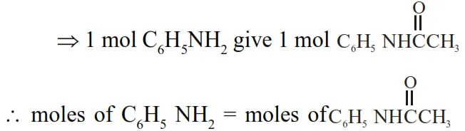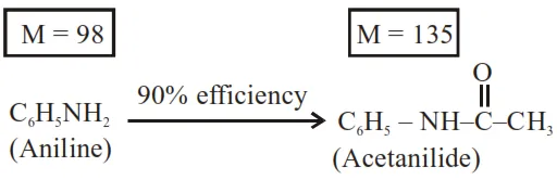$\therefore$ Mass of acetanilide produced $=2.70 \times \frac{90}{100} \mathrm{~g}$