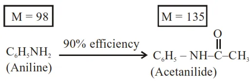 $\therefore$ Mass of acetanilide produced $=2.70 \times \frac{90}{100} \mathrm{~g}$