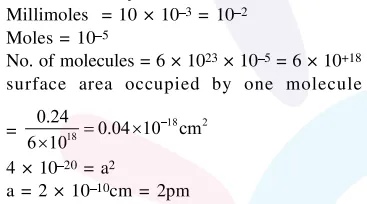 Question: $10 \mathrm{~mL}$ of $1 \mathrm{mM}$ surfactant solution forms a monolayer covering $0.24 \mathrm{~cm}^{2}$ on a polar substrate. If the polar head is approximated as cube, what is its edge length?