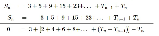 $\Rightarrow 3+\left[\frac{(n-1)}{2}(2 n)\right]=T_{n}$