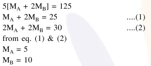5 moles of $\mathrm{AB}_{2}$ weigh $125 \times 10^{-3} \mathrm{~kg}$ and 10 moles of $\mathrm{A}_{2} \mathrm{~B}_{2}$ weigh $300 \times 10^{-3} \mathrm{~kg}$. The molar mass of $\mathrm{A}\left(\mathrm{M}_{\mathrm{A}}\right)$ and molar mass of $\mathrm{B}\left(\mathrm{M}_{\mathrm{B}}\right)$ in $\mathrm{kg} \mathrm{mol}^{-1}$ are :