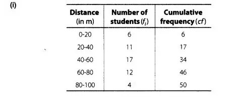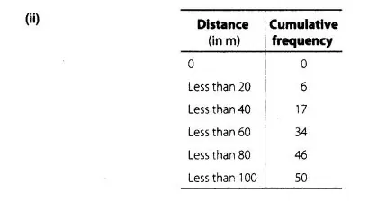 (ii) Draw a cumulative frequency curve (less than type) and calculate the median distance drawn by using