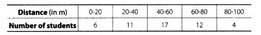 50 students enter for a school javelin throw competition. The distance (in metre) thrown are recorded below