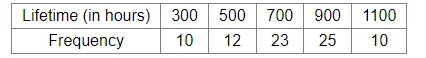 80 bulbs are selected at random from a lot and their lifetime is hours is recorded as under.