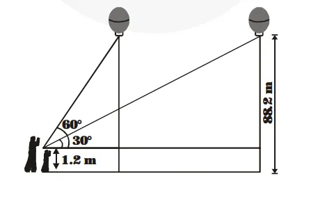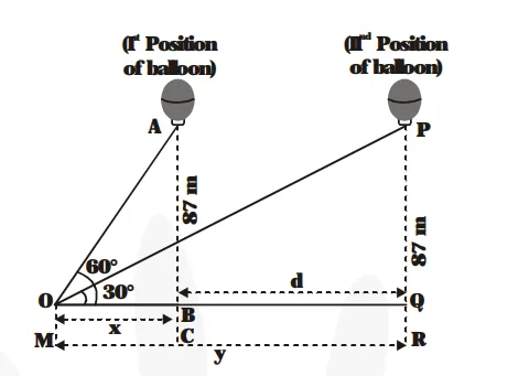 A 1.2 m tall girl spots a balloon moving with the wind in a horizontal line at a height of 88.2 m from the ground. The angle of elevation of the balloon from the eyes of the girl at any instant is 60°. After some time, the angle of elevation reduces to 30°. Find the distance travelled by the balloon during the interval.