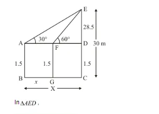 Therefore ∠A = 30° and ∠F = 60° given CE = 30 m, AB = 15 m, FG = 1.5 and DE = 28.5, GC = X − x and FD = X − x