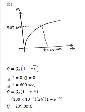 A $100 \mu \mathrm{F}$ capacitor is joined to a $24 \mathrm{~V}$ battery through a $1.0 \mathrm{M} \Omega$ resistor. Plot qualitative graphs