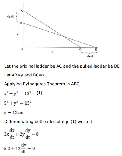the wall, at the rate of $2 \mathrm{~m} / \mathrm{s}$. How fast is its height on the wall decreasing when the foot of the ladder is $5 \mathrm{~m}$ away from the wall?