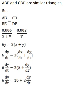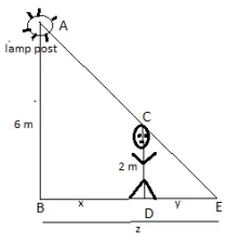 A 2-m tall man walks at a uniform speed of a uniform speed of $5 \mathrm{~km}$ per hour away from a 6-metre-high lamp post. Find the rate at which the length of his shadow increases.