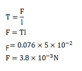 A $5.0 \mathrm{~cm}$ long straight piece of thread is kept on the surface of water. Find the force with which the surface on one side of the thread pulls it. Surface tension of water $=0.076 \mathrm{~N} / \mathrm{m}$
