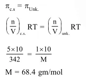 A $5 \%$ solution of cane sugar (molar mass 342 ) is isotonic with $1 \%$ of a solution of an unknown solute. The molar mass of unknown solute in $\mathrm{g} / \mathrm{mol}$ is :-
