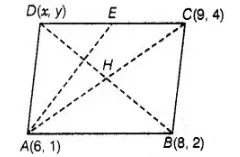 $\Rightarrow$ $\left(\frac{8+x}{2}, \frac{2+y}{2}\right)=\left(\frac{6+9}{2}, \frac{1+4}{2}\right)$