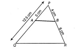 Given, PQ = 12.5 cm, PA = 5 cm, BR = 6 cm and PB = 4 cm