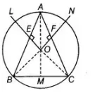 Now, we draw a perpendicular from $O$ to the $B C$ and join them. In $\triangle O M B$ and $\triangle O M C$,