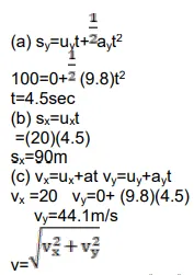 $\mathrm{v}=49 \mathrm{~m} / \mathrm{s}$ at $\tan ^{-1}\left(\frac{44.1}{20}\right)$ that is $66^{\circ}$ from ground
