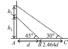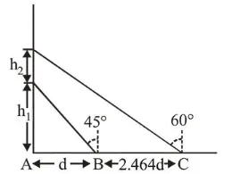 And, $\frac{h_{1}+h_{2}}{d+2.464 d}=\tan 30^{\circ}$