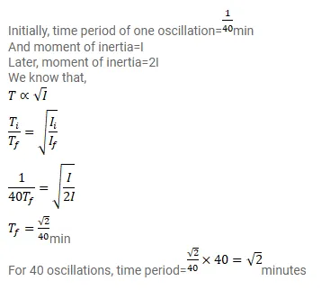 A bar magnet makes 40 oscillations per minute in an oscillation magnetometer. An identical magnet is demagnetized completely and is placed over the magnet in the magnetometer. Find the time taken for 40 oscillations by this combination. Neglect any induced magnetism.