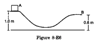 A block of mass $1 \mathrm{~kg}$ is placed at the point A of a rough track shown in figure (8-E6). If slightly pushed towards right, it stops at the point B of the track. Calculate the work done by the frictional force on the block during its transit from A to B.
