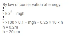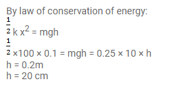 A block of mass $250 \mathrm{~g}$ is kept on a vertical spring of spring constant $100 \mathrm{~N} / \mathrm{m}$ fixed from below. The spring is now compressed to have a length $10 \mathrm{~cm}$ shorter than its natural length and the system is released from this position. How high does the block rise? Take $\mathrm{g}=10 \mathrm{~m} / \mathrm{s}^{2}$.