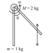 $\frac{1}{2} I \omega^{2}=2 m g \frac{l}{2}(1-\cos \theta)+m g l(1-\cos \theta)$