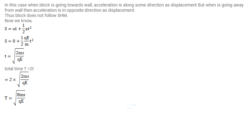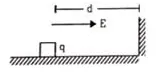 A block of mass $m$ containing a net positive charge $q$ is placed on a smooth horizontal table which terminates in a vertical wall as shown in figure (29-E2). The distance of the block from the wall is $\mathrm{d}$. A horizontal electric field $E$ towards right is switched on. Assuming elastic collisions (if any) find the time period of the resulting oscillatory motion. Is it a simple harmonic motion?