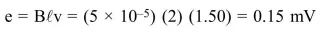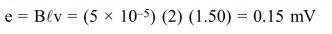 A boat is moving due east in a region where the earth's magnetic field is $5.0 \times 10^{-5} \mathrm{NA}^{-1} \mathrm{~m}^{-1}$ due north and horizontal. The boat carries a vertical aerial $2 \mathrm{~m}$ long. If the speed of the boat is $1.50 \mathrm{~ms}^{-1}$, the magnitude of the indueced emf in the wire of aerial is :-