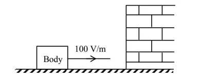 A body having specific charge $8 \mu \mathrm{C} / \mathrm{g}$ is resting on a frictionless plane at a distance $10 \mathrm{~cm}$ from the wall (as shown in the figure). It starts moving towards the wall when a uniform electric field of $100 \mathrm{~V} / \mathrm{m}$ is applied horizontally towards the wall. If the collision of the body with the wall is perfectly elastic, then the time period of the motion will be________ $\mathrm{s}$.