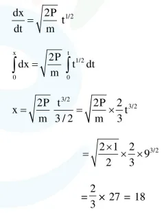 A body of mass $2 \mathrm{~kg}$ is driven by an engine delivering a constant power $1 \mathrm{~J} / \mathrm{s}$. The body starts from rest and moves in a straight line. After 9 seconds, the body has moved a distance (in $\mathrm{m}$ )_________.