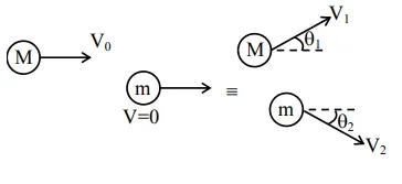 in $\mathrm{y}$-direction $0=M \mathrm{MV}_{1} \sin \theta-\mathrm{mV}_{2} \sin \theta$