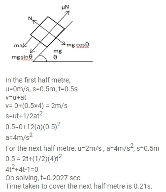 A body starts slipping down an incline and moves half meter in half second. How long will it take to move the next half meter?