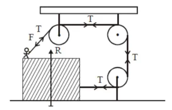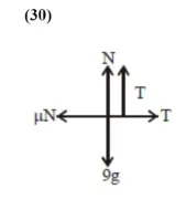 A boy of mass $4 \mathrm{~kg}$ is standing on a piece of wood having mass $5 \mathrm{~kg}$. If the coefficient of friction between the wood and the floor is $0.5$, the maximum force that the boy can exert on the rope so that the piece of wood does not move from its place is N.(Round off to the Nearest Integer)