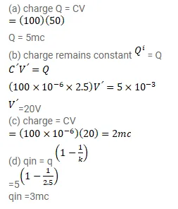 (b) The charging battery is disconnected and a dielectric of dielectric constant $2.5$ is inserted. Calculate the new potential difference between the plates,